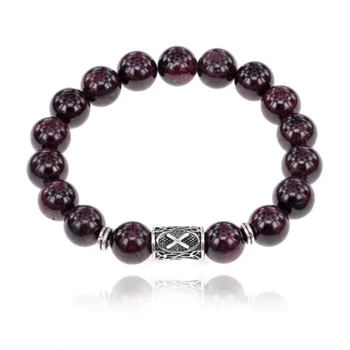 Браслет с руной Гебо и нат.камнем Гранат 10 мм BSRC-08-06
