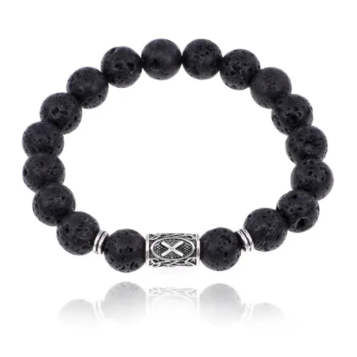 Браслет с руной Гебо и натуральным камнем Лава диаметром 10 мм.