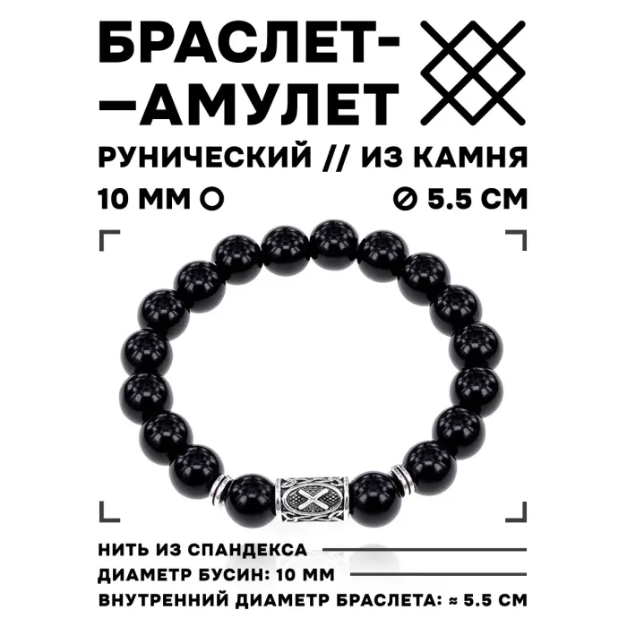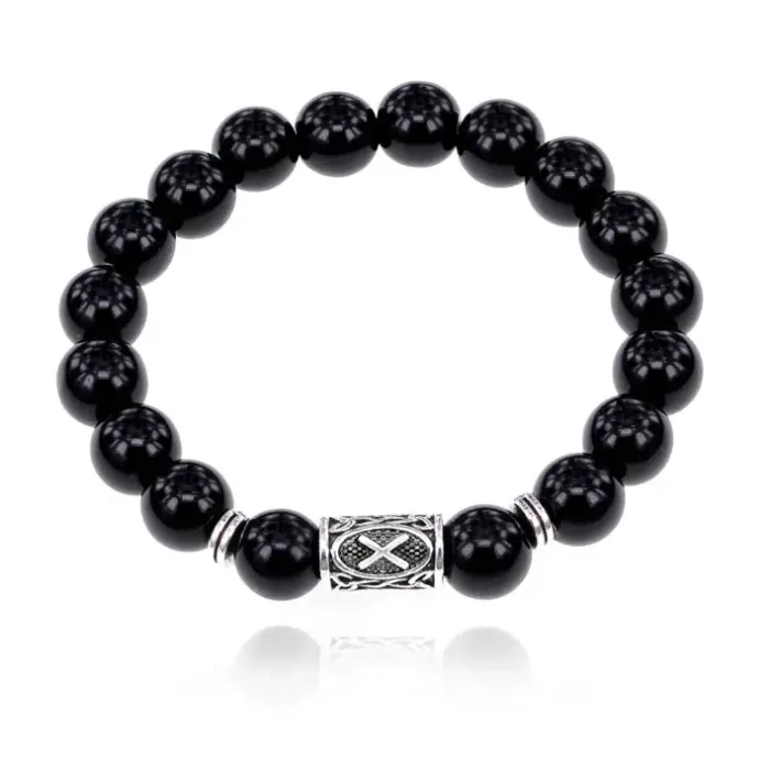 Браслет с руной Гебо и нат.камнем Черный агат 10 мм BSRC-08-23