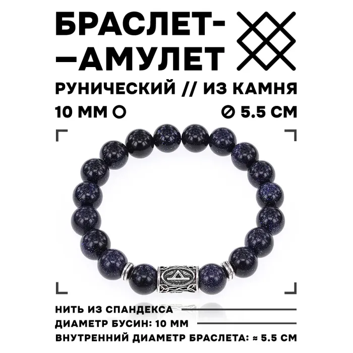 Браслет-стрейч с руной Турисаз и синтетическим камнем синий авантюрин.