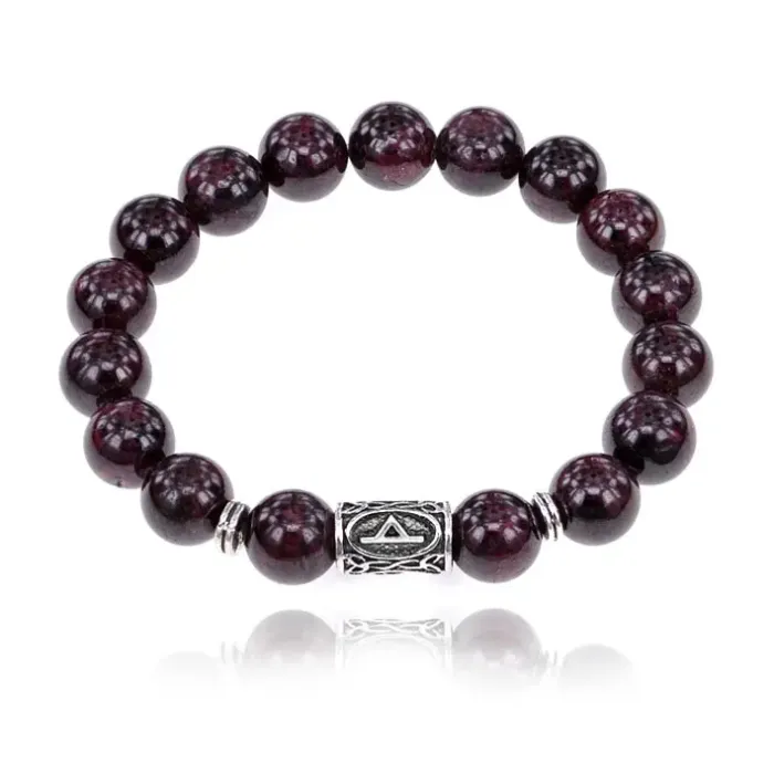 Браслет с руной Турисаз и нат.камнем Гранат 10 мм BSRC-09-06
