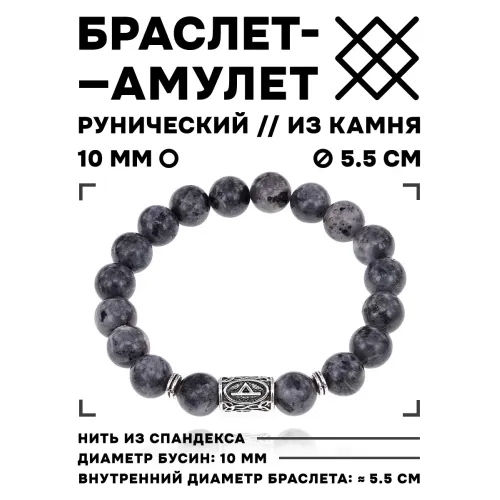 Браслет с руной Турисаз и натуральным камнем лабрадор.