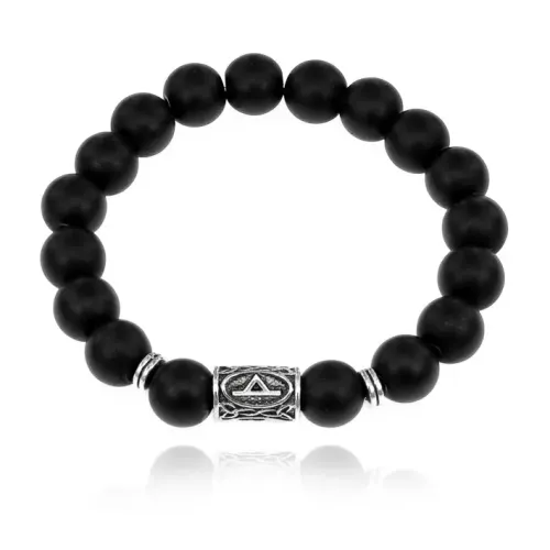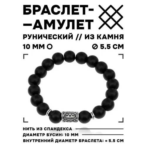 Браслет с руной Турисаз и синт. камнем Шунгит 10 мм BSRC-09-24