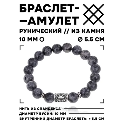 Браслет с руной Райдо и нат.камнем Лабрадор 10 мм BSRC-10-08
