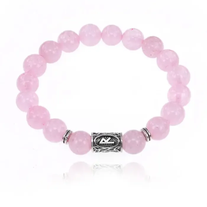 Браслет с руной Райдо и нат.камнем Розовый кварц 10 мм BSRC-10-15