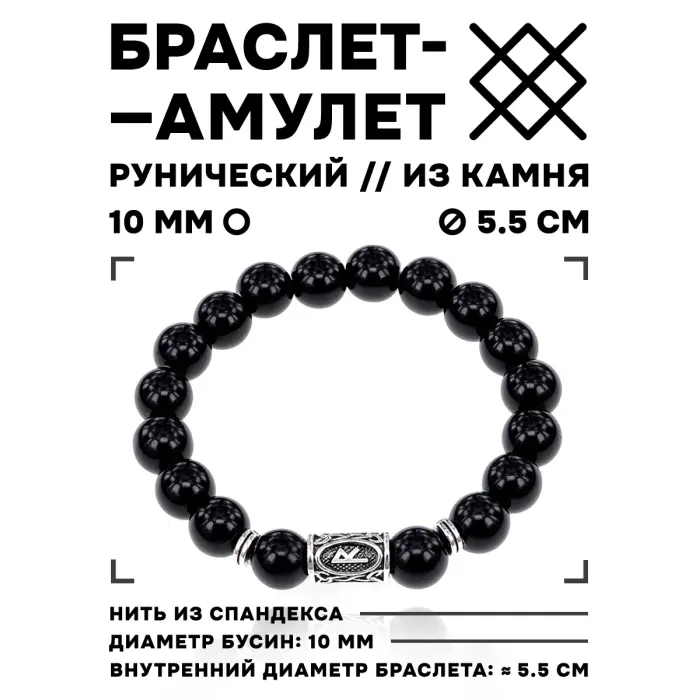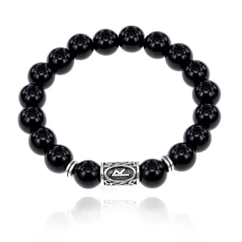 Браслет с руной Райдо и нат.камнем Черный агат 10 мм BSRC-10-23