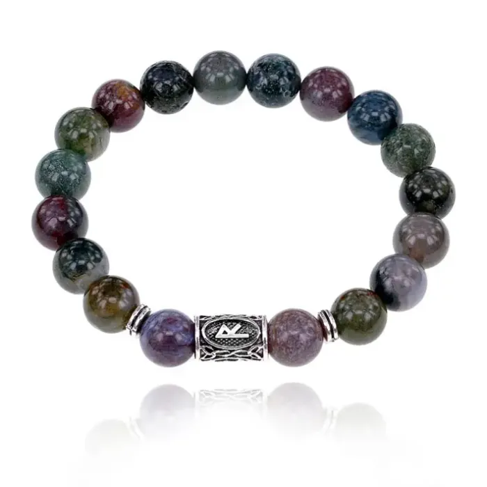 Браслет с руной Райдо и нат.камнем Яшма 10 мм BSRC-10-25