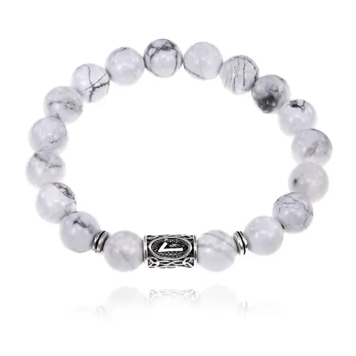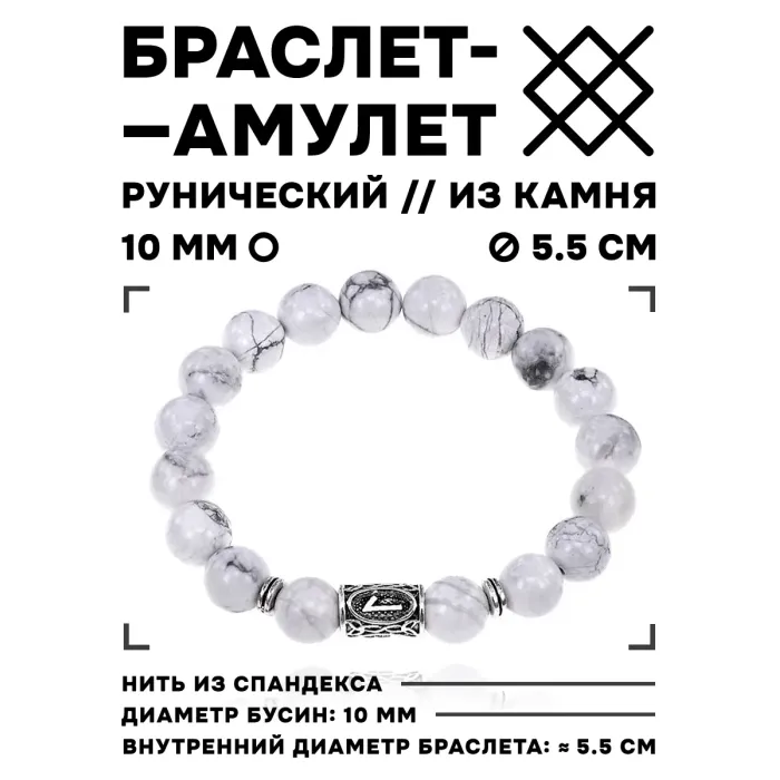 Браслет с руной Лагуз и нат.камнем Кахолонг 10 мм BSRC-11-07