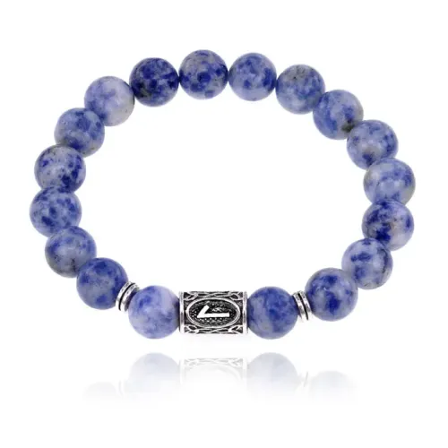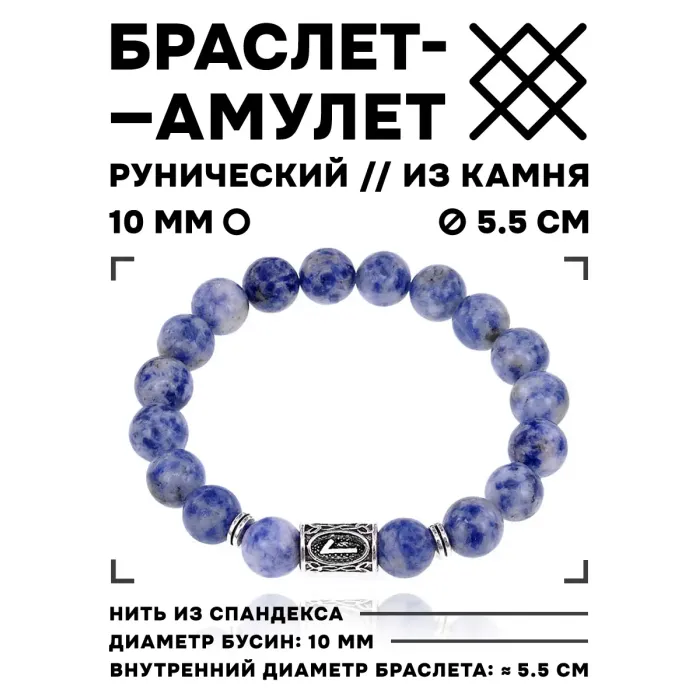 Браслет-стрейч с натуральным камнем содалит и руной Лагуз.