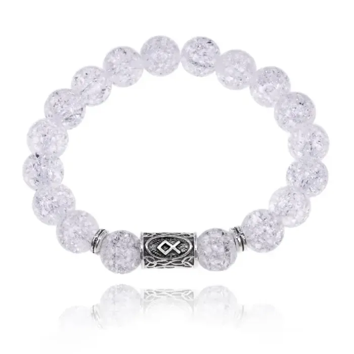 Браслет с руной Одал и синт.камнем Сахарный кварц 10 мм BSRC-12-16