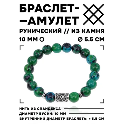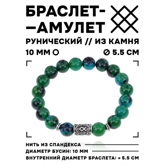 Браслет с руной Одал и синт.камнем Хризоколла 10 мм BSRC-12-21