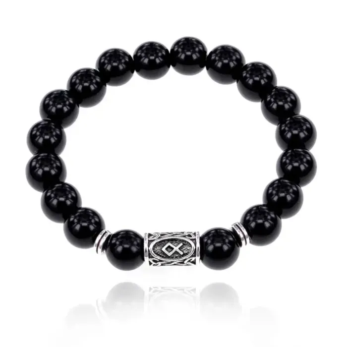 Браслет с руной Одал и нат.камнем Черный агат 10 мм BSRC-12-23