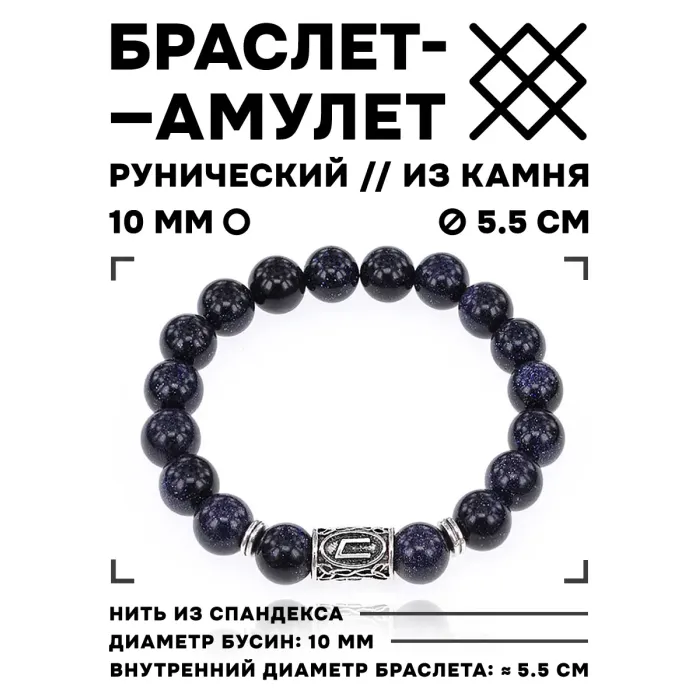 Браслет с руной Уруз и синт.камнем Синий авантюрин 10 мм
