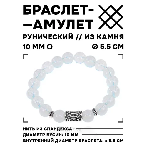 Браслет с руной Уруз и синт. камнем Лунный камень 10 мм BSRC-13-11