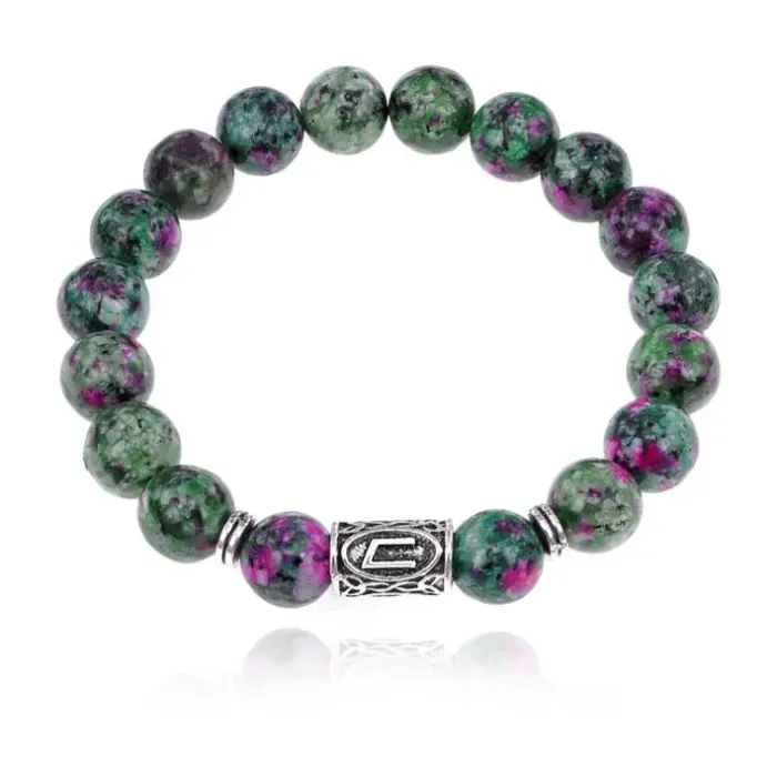 Браслет с руной Уруз и синтетическим камнем Цоизит 10 мм BSRC-13-22