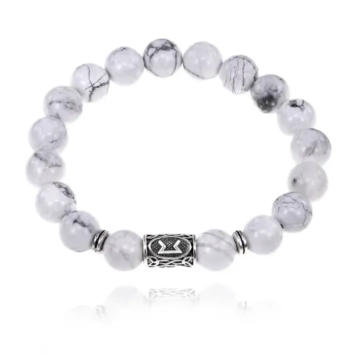 Браслет с руной Перт и нат.камнем Кахолонг 10 мм BSRC-14-07