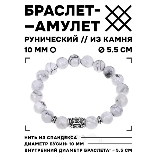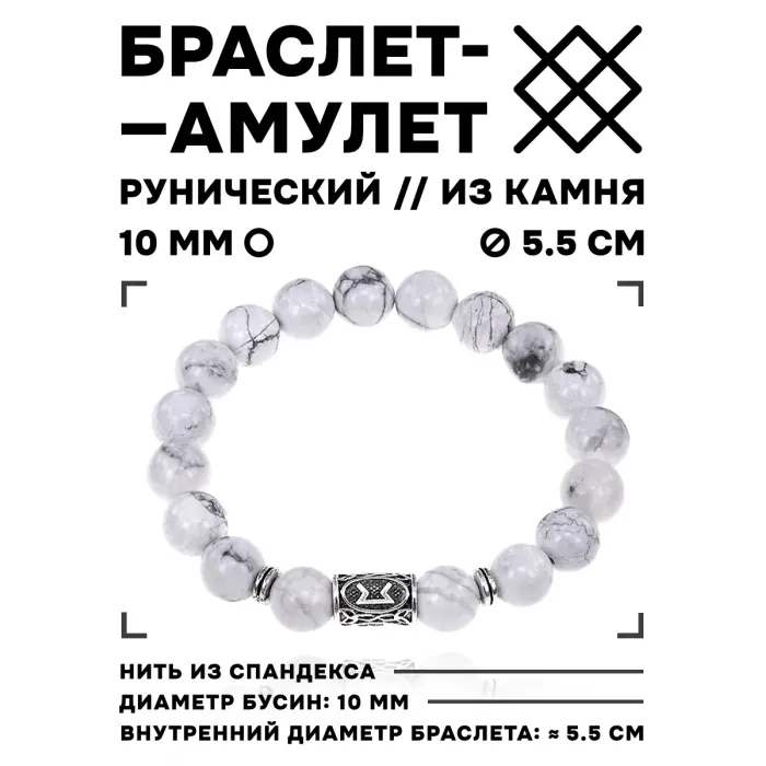 Материал и изготовление: Натуральный камень кахолонг, бусина с нанесённой руной Перт.