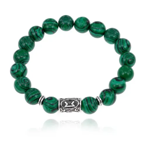 Браслет с руной Перт и синт. камнем Малахит 10 мм BSRC-14-12