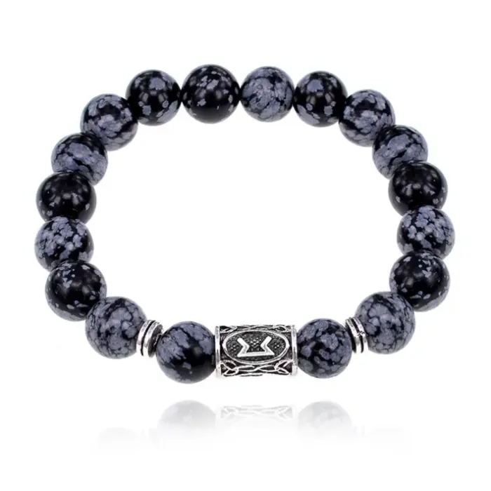 Браслет с руной Перт и нат.камнем Снежный обсидиан 10 мм BSRC-14-14