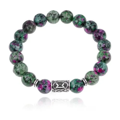 Браслет с руной Перт и синтетическим камнем Цоизит 10 мм BSRC-14-22