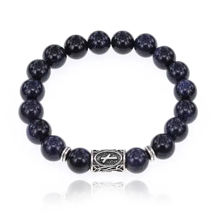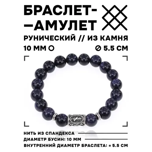 Браслет с руной Наутиз и синт. камнем Синий авантюрин 10 мм