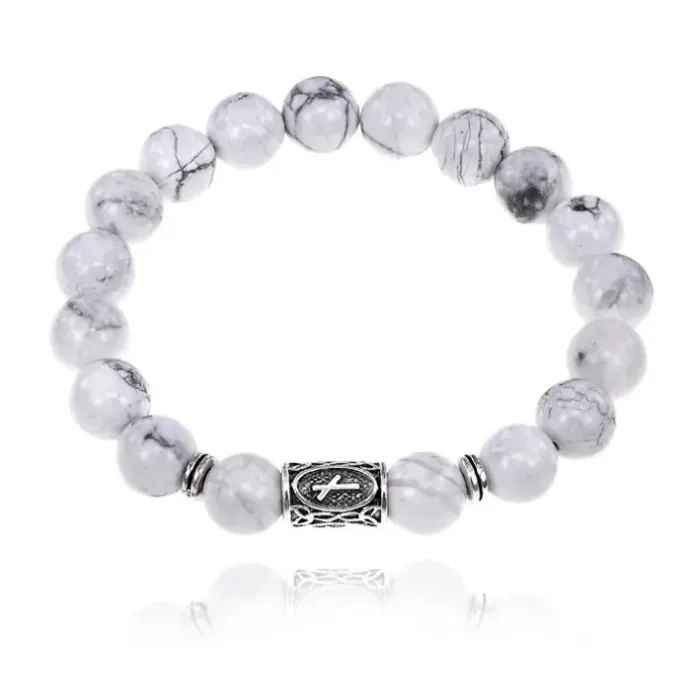 Браслет с руной Наутиз и нат.камнем Кахолонг 10 мм BSRC-15-07