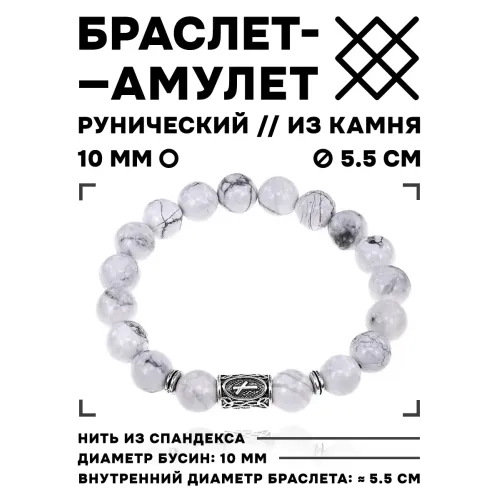 Стрейч-браслет с руной Наутиз и бусинами из натурального камня кахолонг.