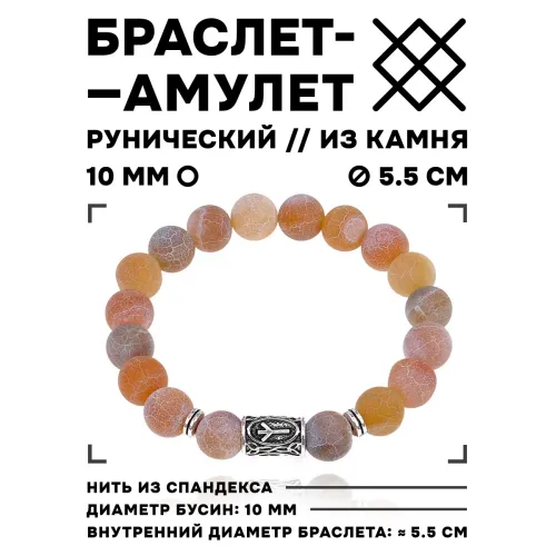 Стрейч-браслет с руной Альгиз и бусинами из африканского агата диаметром 10 мм.