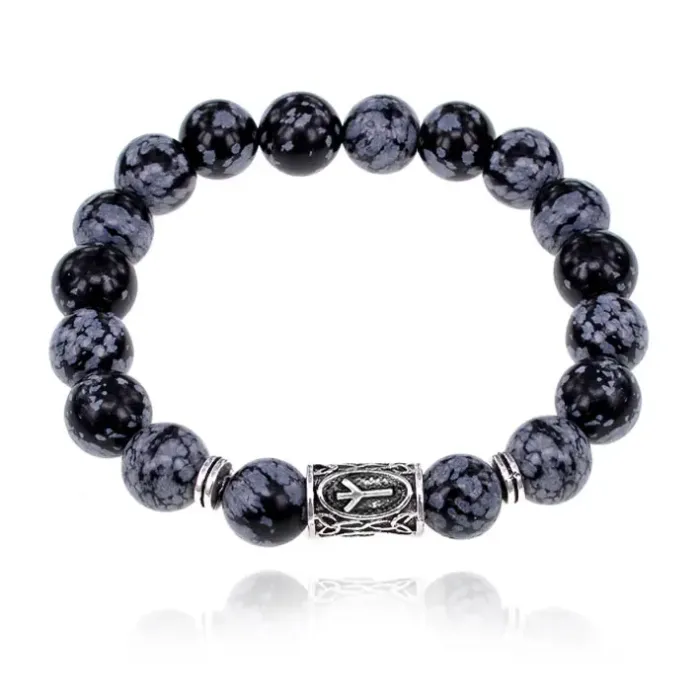 Браслет с руной Альгиз и нат. камнем Снежный обсидиан 10 мм BSRC-16-14