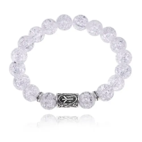 Браслет с руной Альгиз и синтетическим камнем Сахарный кварц.