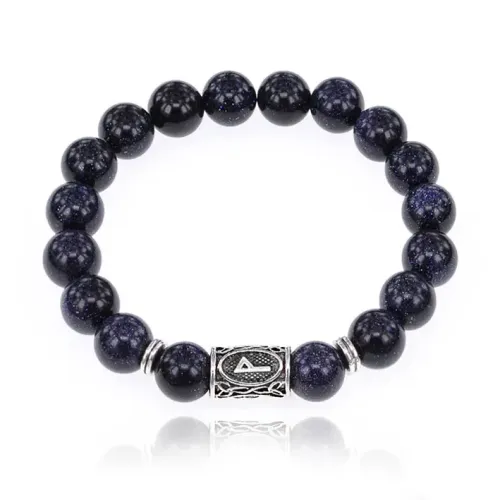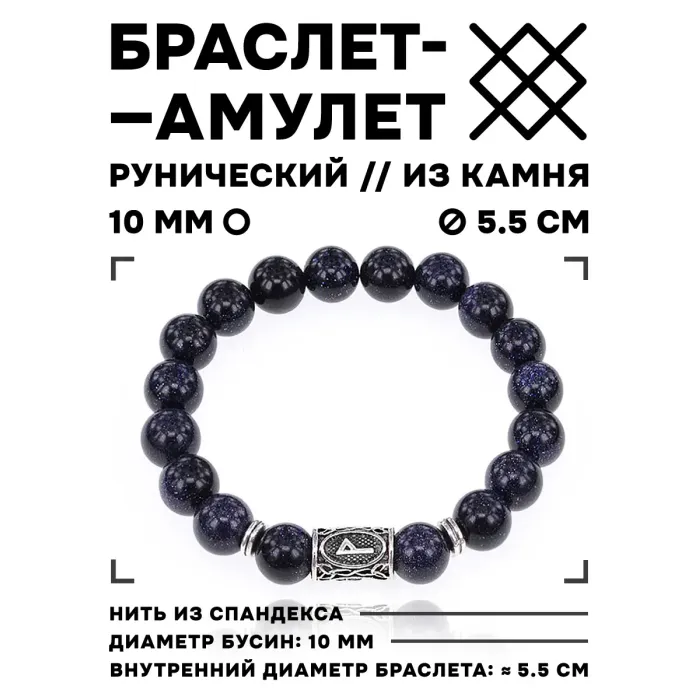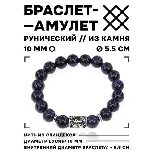 Браслет с руной Вуньо и синт.камнем Синий авантюрин 10 мм