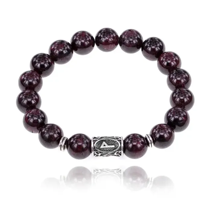 Браслет с руной Вуньо и нат.камнем Гранат 10 мм BSRC-18-06