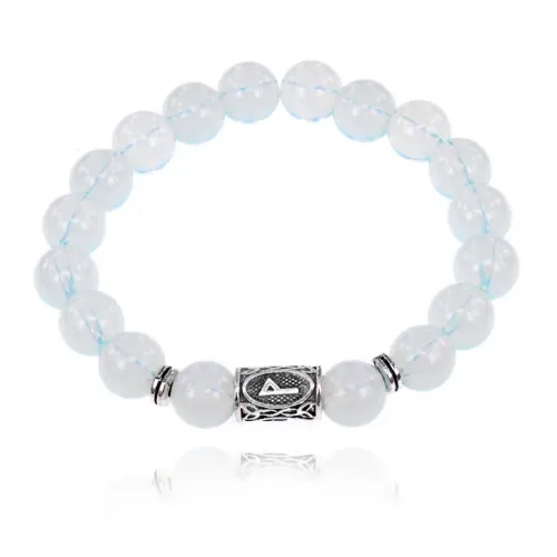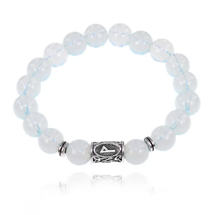 Браслет с руной Вуньо и синт.камнем Лунный камень 10 мм BSRC-18-11