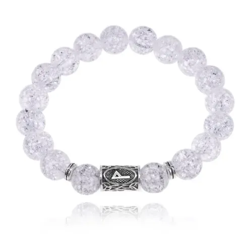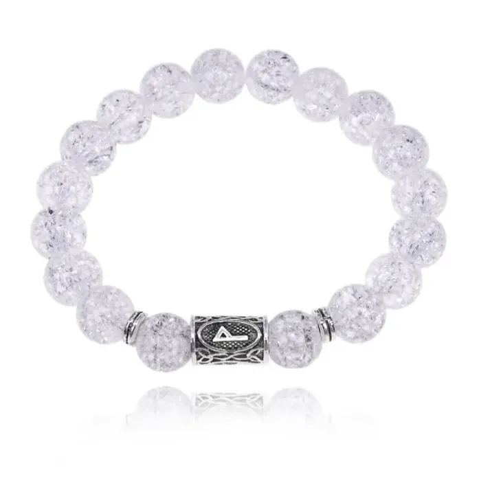 Браслет с руной Вуньо и синт.камнем Сахарный кварц 10 мм BSRC-18-16