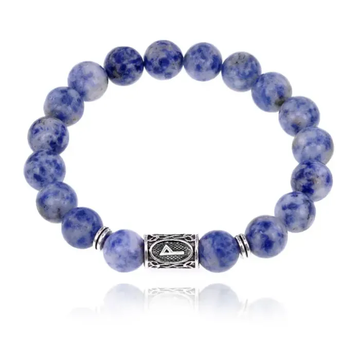 Браслет с руной Вуньо и нат.камнем Содалит 10 мм BSRC-18-18