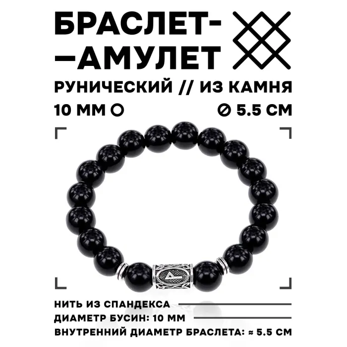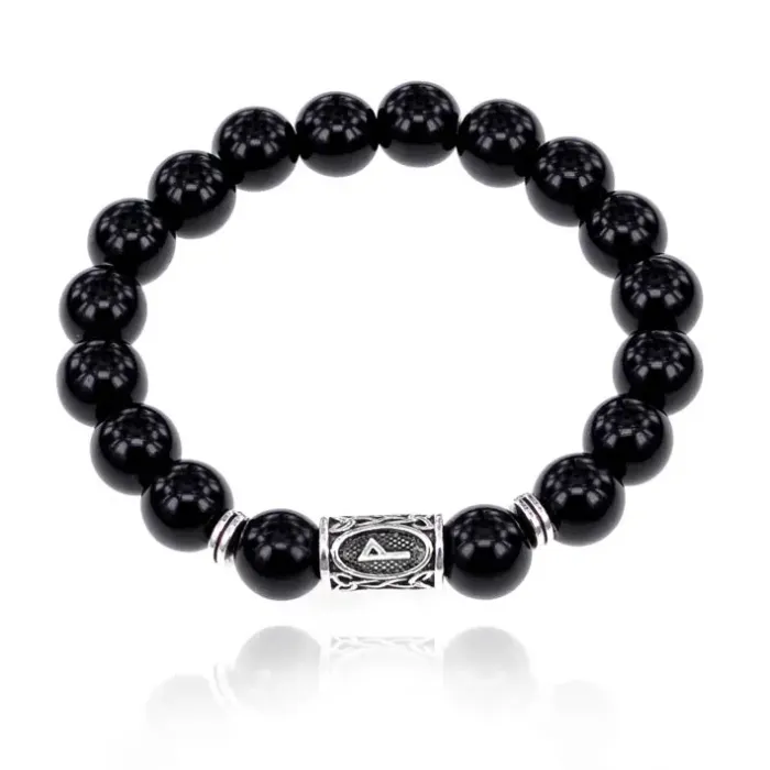 Браслет с руной Вуньо и нат.камнем Черный агат 10 мм BSRC-18-23