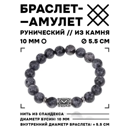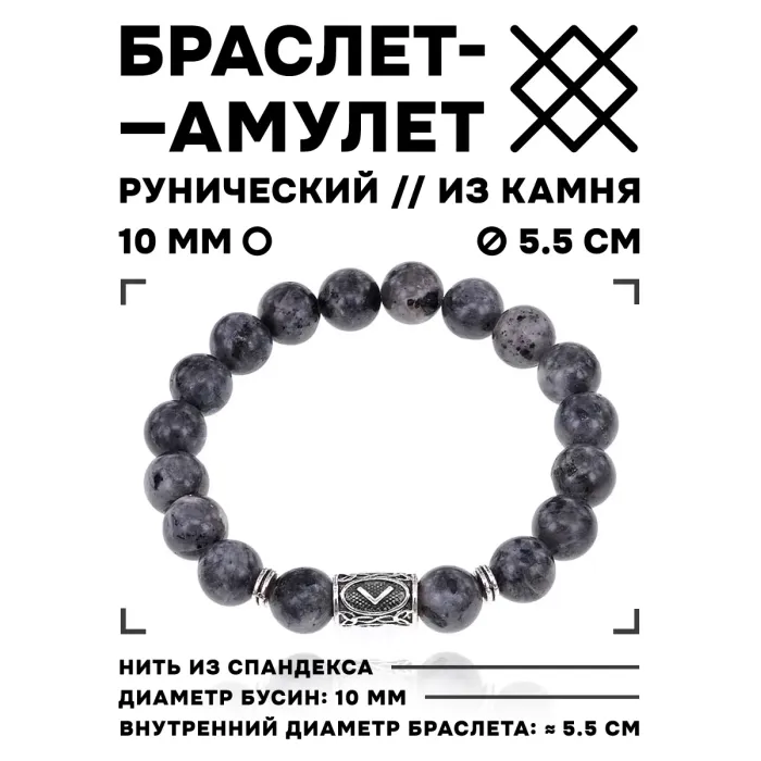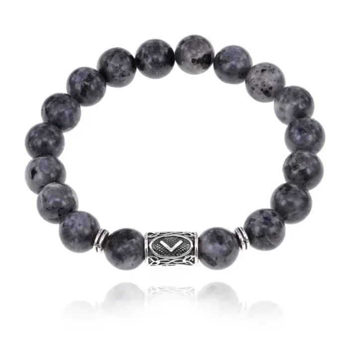 Браслет из натурального камня лабрадор с бусиной, на которую нанесена руна Кеназ.