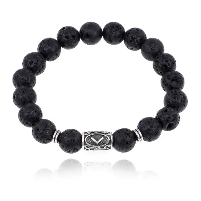 Браслет с руной Кеназ и нат. камнем Лава 10 мм BSRC-19-09