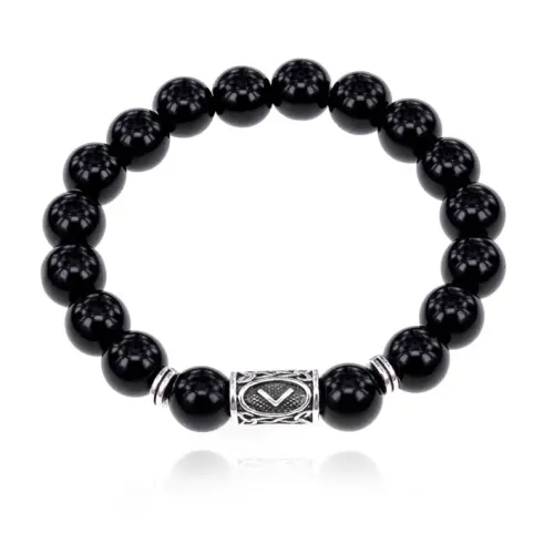 Браслет с руной Кеназ и нат.камнем Черный агат 10 мм BSRC-19-23