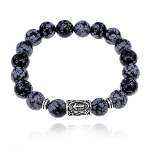 Браслет с руной Тейваз и нат.камнем Снежный обсидиан 10 мм BSRC-20-14