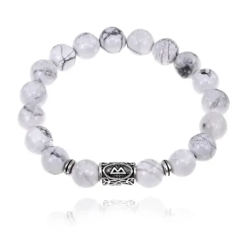 Браслет с руной Беркана и нат. камнем Кахолонг 10 мм BSRC-21-07