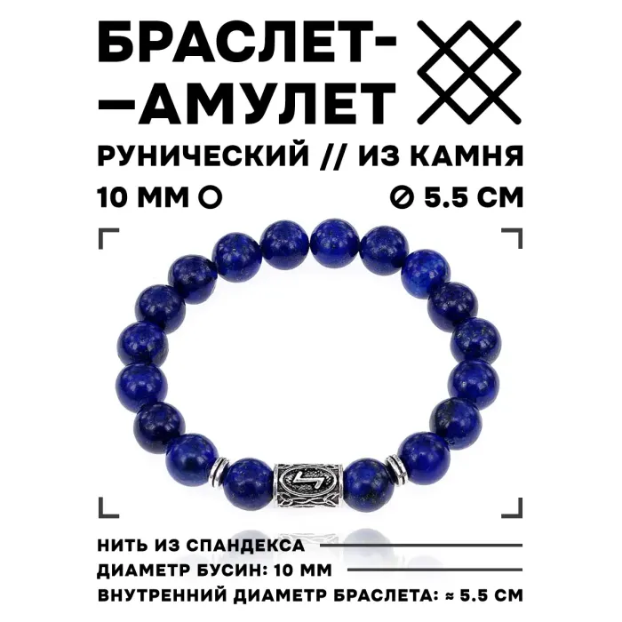 Браслет с руной Эйваз и нат. камнем Лазурит 10 мм BSRC-22-10