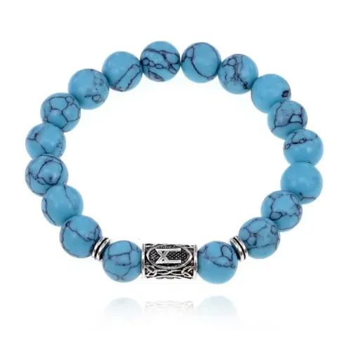 Браслет с руной Манназ и синт.камнем Бирюза 10 мм BSRC-23-05