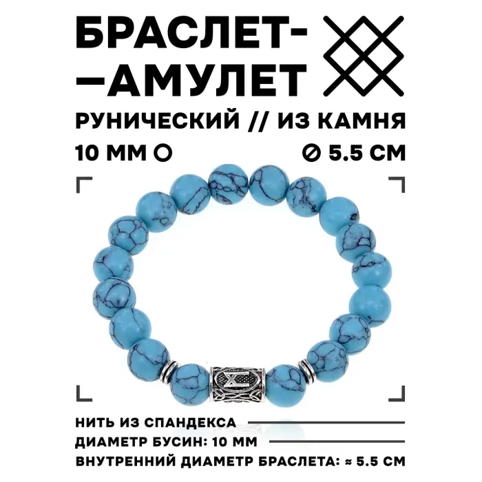 Стрейч-браслет с руной Манназ и синтетической бирюзой диаметром 10 мм.