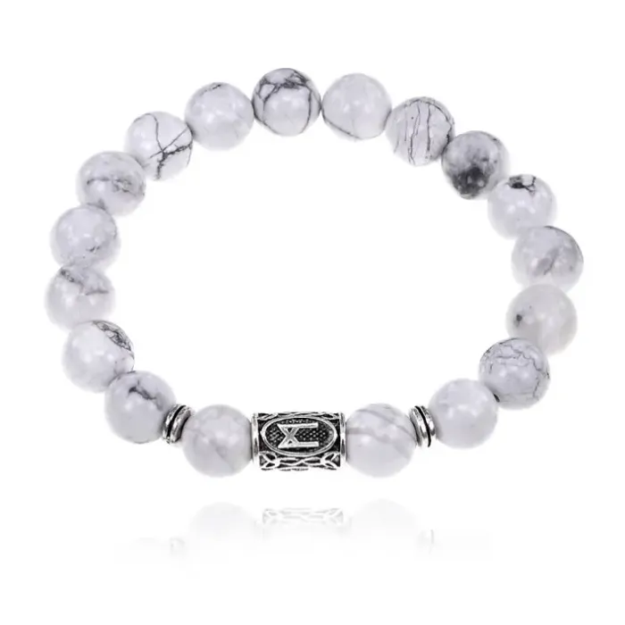 Браслет с руной Манназ и нат.камнем Кахолонг 10 мм BSRC-23-07