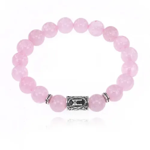 Браслет с руной Манназ и нат.камнем Розовый кварц 10 мм BSRC-23-15