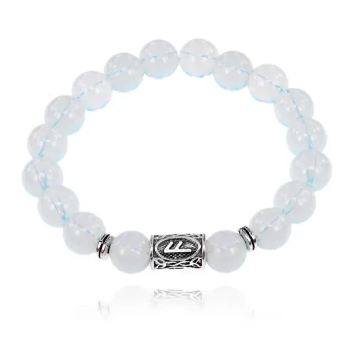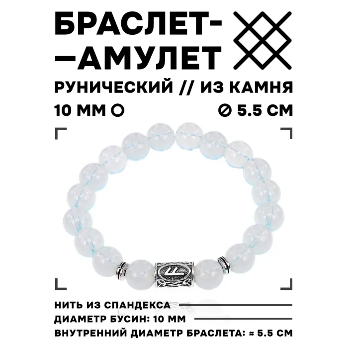 Браслет с руной Ансуз из синтетического лунного камня диаметром 10 мм на эластичной основе.
