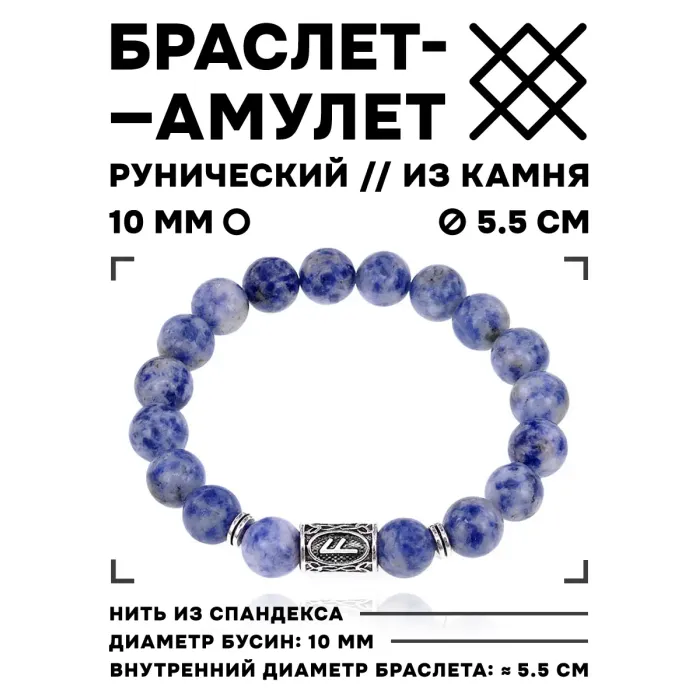 Браслет с руной Ансуз и нат.камнем Содалит 10 мм BSRC-24-18