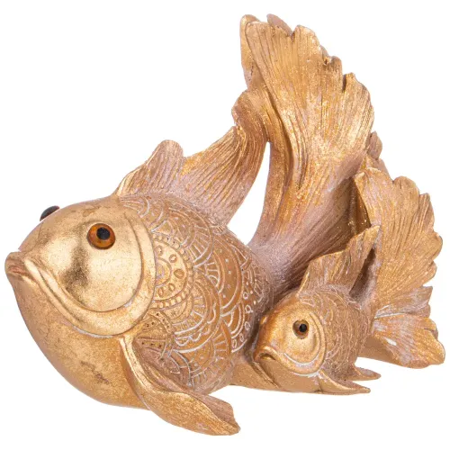 Фигурка выполнена с акцентом на детализацию, что подчёркивает качество изготовления. Полистоун — искусственный камень, устойчивый к внешним воздействиям и сохраняющий свой внешний вид на протяжении долгого времени. Декор в виде рыб символизирует интеллект и мудрость, добавляя пространству особую атмосферу.