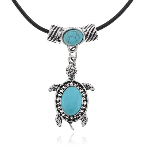 Амулет в виде черепахи с вставками из синтетической бирюзы на регулируемом шнурке.